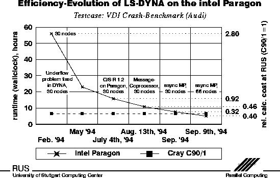 following figure shows the history of LS-DYNA3D on the intel Paragon